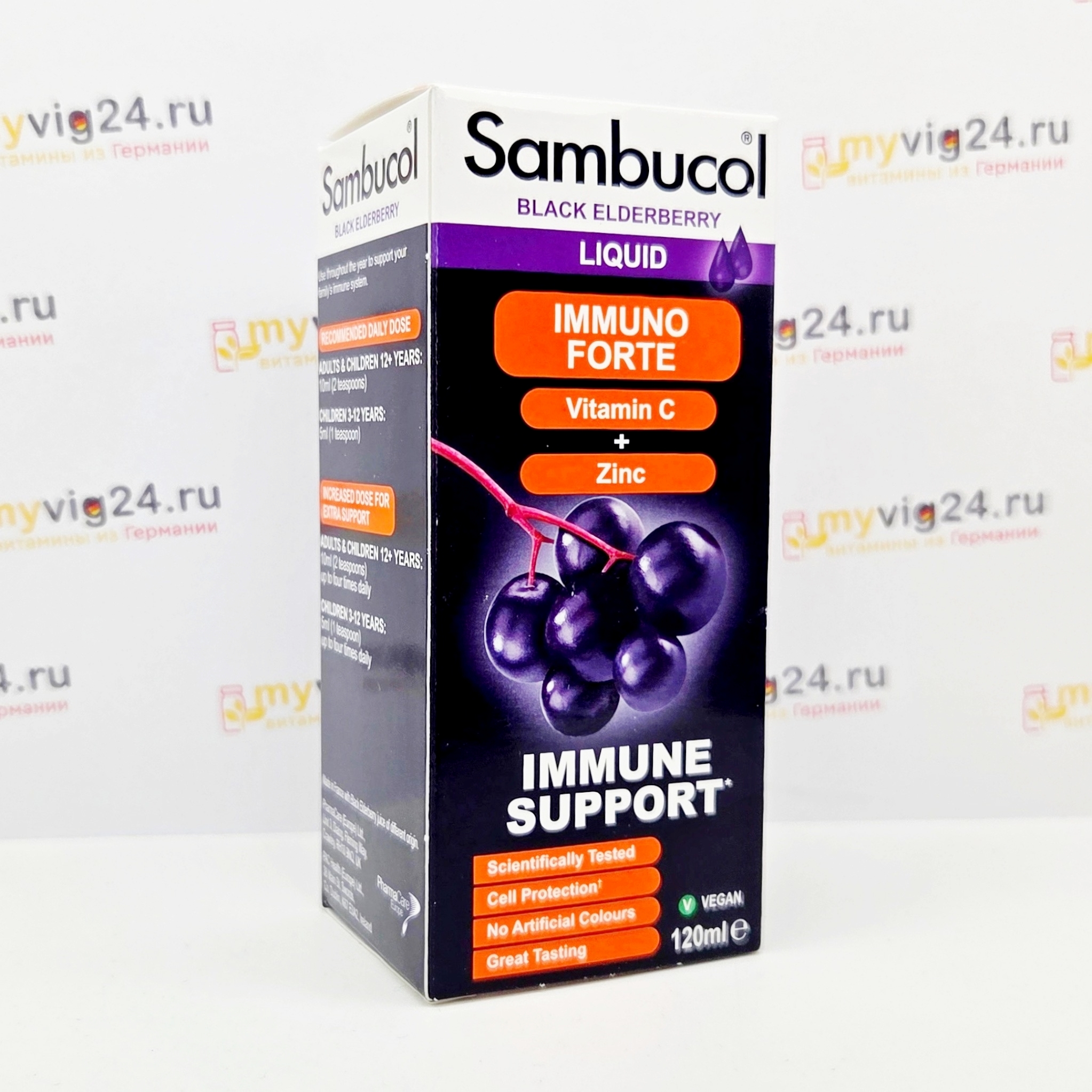 Sambucol Immuno Forte Самбукол Иммуно Форте, 120 мл Помогите поддержать вашу иммунную систему с помощью Sambucol Immuno Forte Black Elderberry, с витамином С и цинком.- Подходит для детей от 3 лет